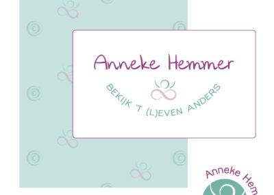 Hierboven zie je het logo en huisstijlpatroon dat ik voor Anneke Hemmer heb ontworpen.